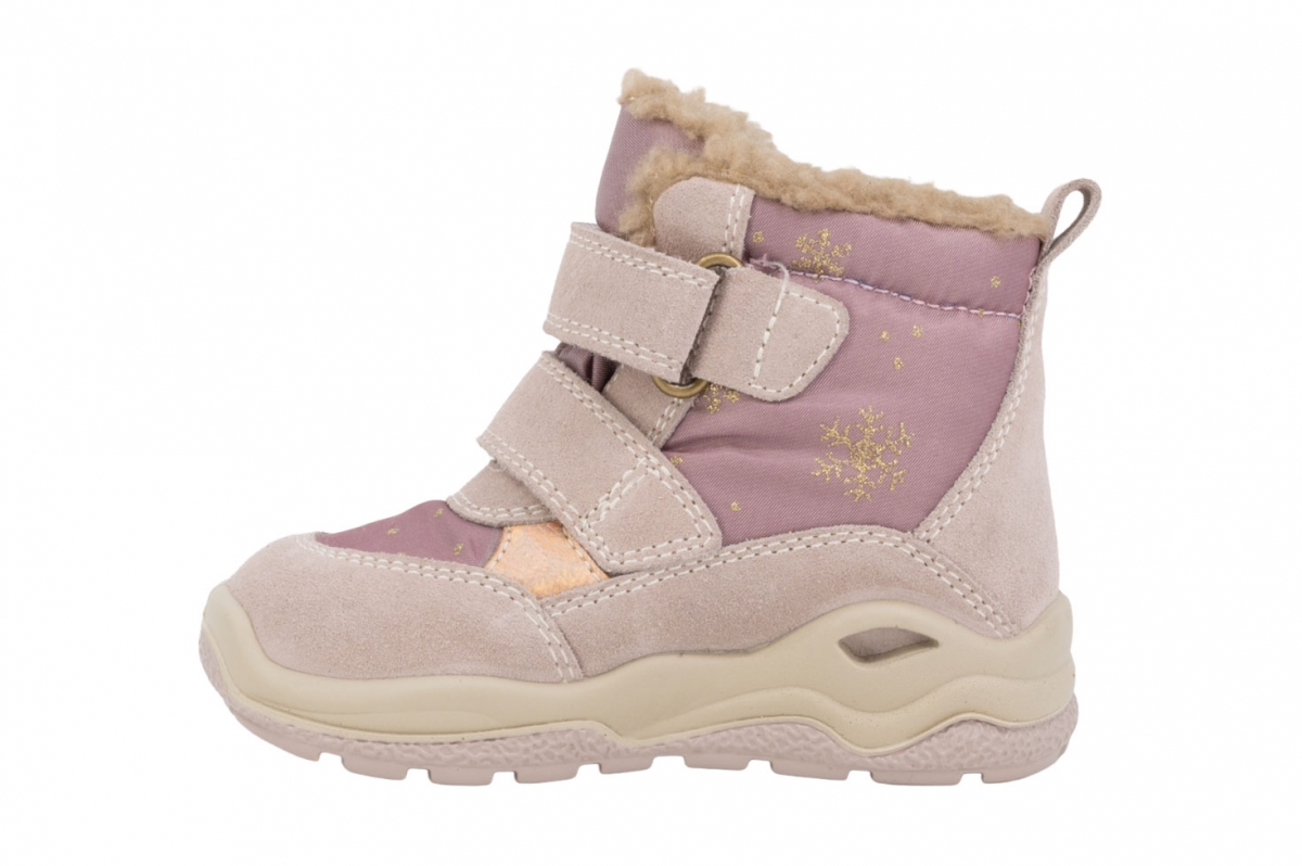 Otroški čevelj ima notranjo podlogo iz mehke flanele, ki poskrbi, da bodo nogice tople tudi v najhladnejših dneh.
